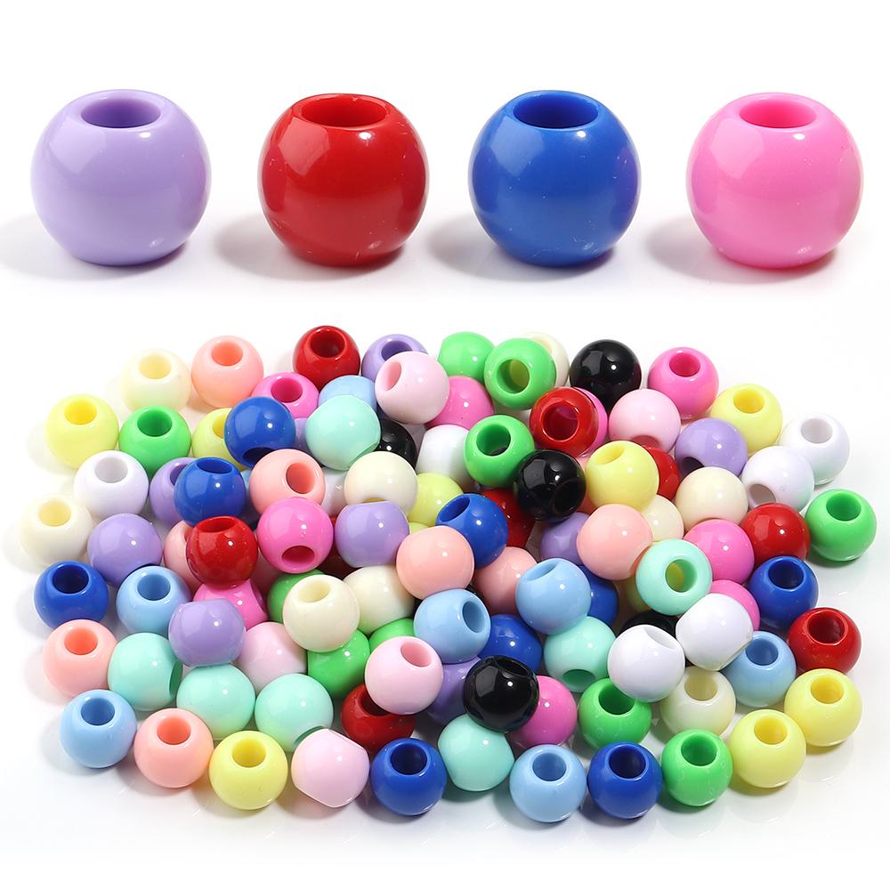 50pcs/lot Acrylic Big Hole Beads Solid Color Round Loose Spacer Beads For Jewelry Making DIY Charm Bracelet Necklace Accessories
