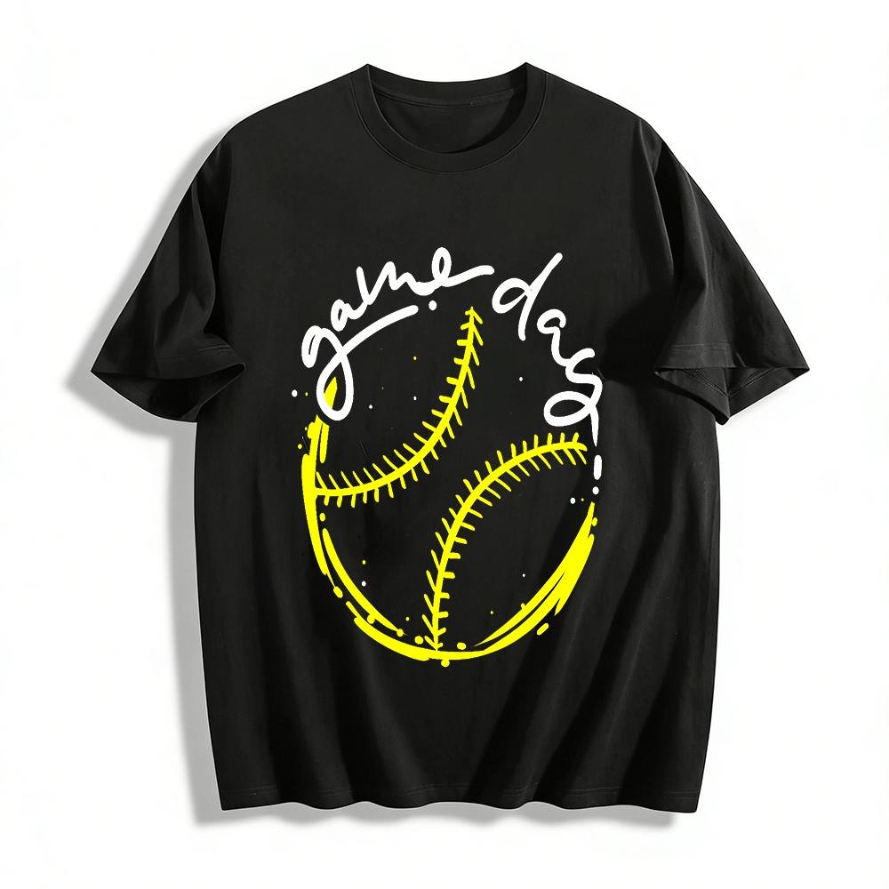 Game Day Softball Graphic Print Casual Short Sleeve T-Shirt Pure Cotton T-shirt