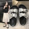 Fashion Beach Shoes Womens Slippers Outdoor Pantofle Slides Platform Low Fashion Sabot 2025 Luxury Rubber Hoof Heels PU Rome Slippers