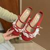French Gentle Niche Lace Baotou Slippers 2025 New Bow Square Head Shallow Mouth Half Drag One Pedal