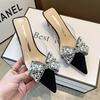 Baotou cool slippers women's outer wear 2025 summer new pearl bow half slippers thick heel pointed head half support single shoes