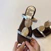 Sheepskin version~ niche French temperament special-shaped wedge heel one-word slippers women's head temperament with skirt beach sandals