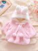 Girls' Furry Cape Rabbit Ears Hooded Coat Cute Furry Ball Coat for Winter Children