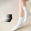 Heel Cloth Label Socks for Women, Solid Color Striped Mid-calf Socks, Spring and Autumn Trendy Pile Socks, Grey Socks