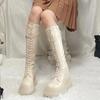 Fashion Lace-up Winter 2025 Knee High Shaft Shoes Woman With Laces Platform Long Boots for Women Waterproof Demi-season Work Spring New