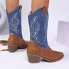 High Knee Boots Trend Wedge Heels Embroidered Shoes for Women Cowgirl Cowboy Boots