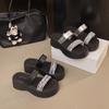 Summer Square-toe Shoes Glitter Platform Slippers Women's Open-toe Flip-flops Heightened Beach Slippers