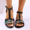 Women's Shoes 2024 New Summer Style Color-blocked Open-toe Women's Sandals Fashionable One-line Buckle Mid-heeled Roman Sandals