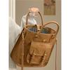 Retro Caramel Macchiato Jacquard Underarm Bag with Wooden Bead Chain