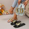 New one-word slippers women's fashion non-slip flat-bottomed square-buckled cool slippers women's summer outer slippers