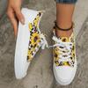 Ladies Casual Round Toe Slip-On Shoes Black, Breathable, Anti-Slip, Sunflower Pattern, Easy to Wear, Flat Heel, Fabric Upper, EVA Sole, Fabric Insole