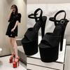 Fashion Sexy Club Velvet Red Thick High Heels 13CM Sandals Square Head Peep Toe Narrow Band Cross Bugkle Strap Women Party Shoes