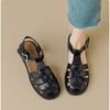 5Cm simple retro style woven hollow T-buckle with casual straw woven thick-soled wedge heel bag head sandals Roman shoes