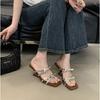 Super beautiful bow wedge heel cool slippers women's summer wear 2025 new French square head open toe with high heels