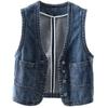 ქალის პლუშის ჟილეტი უმკლავო ცხვრის მატყლით და სქელი ქსოვილით, ჯინსის ჟილეტი
