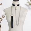 Leather Choker Necklace with Bell Charm & Chain Accents