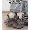 Showing feet little dad shoes women's spring and summer new thick-soled heightening mesh breathable leather casual sports shoes