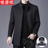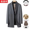 Hengyuanxiang Men's Double-Faced Wool Blend Coat with Detachable Mink Fur Collar