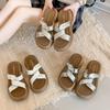 Sieviešu vasaras valkāšanai 2025. gada jaunas, universālas, ar slēgtiem pirkstgaliem, pludmales, slinkas, ar pērlēm, feju stila, vēsas čības ar biezu zoli