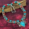 Blå turkis håndlaget edelstenskjede, 925 solid sterlingsølv antikke smykker justerbart kjedekjede, for forlovelsesgave