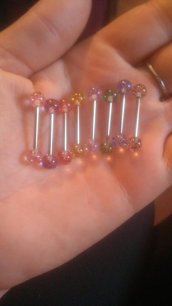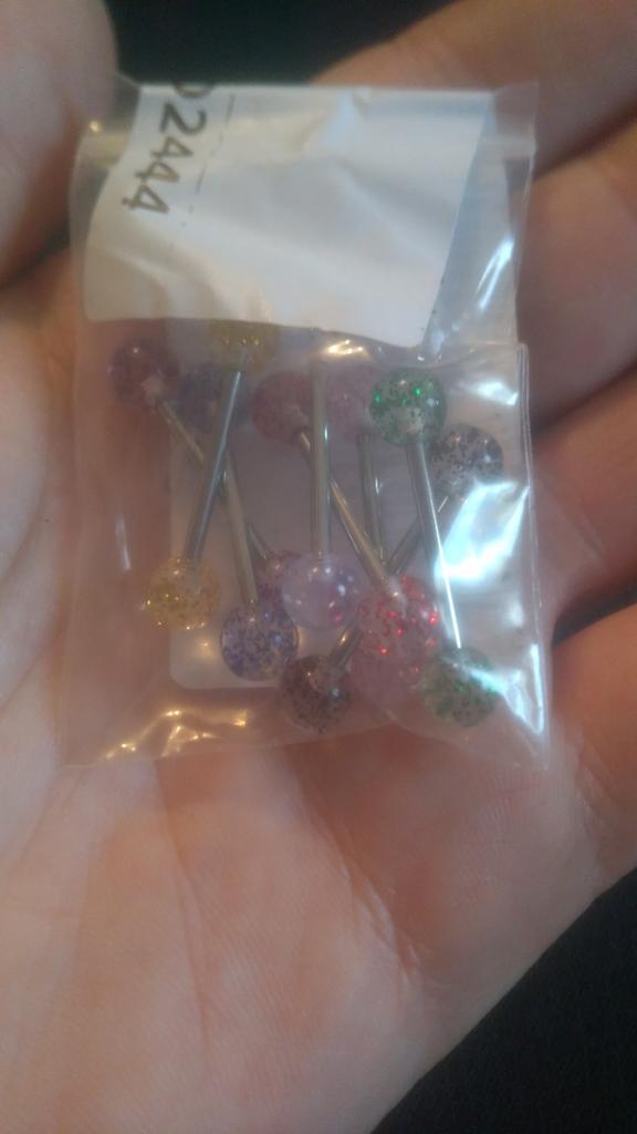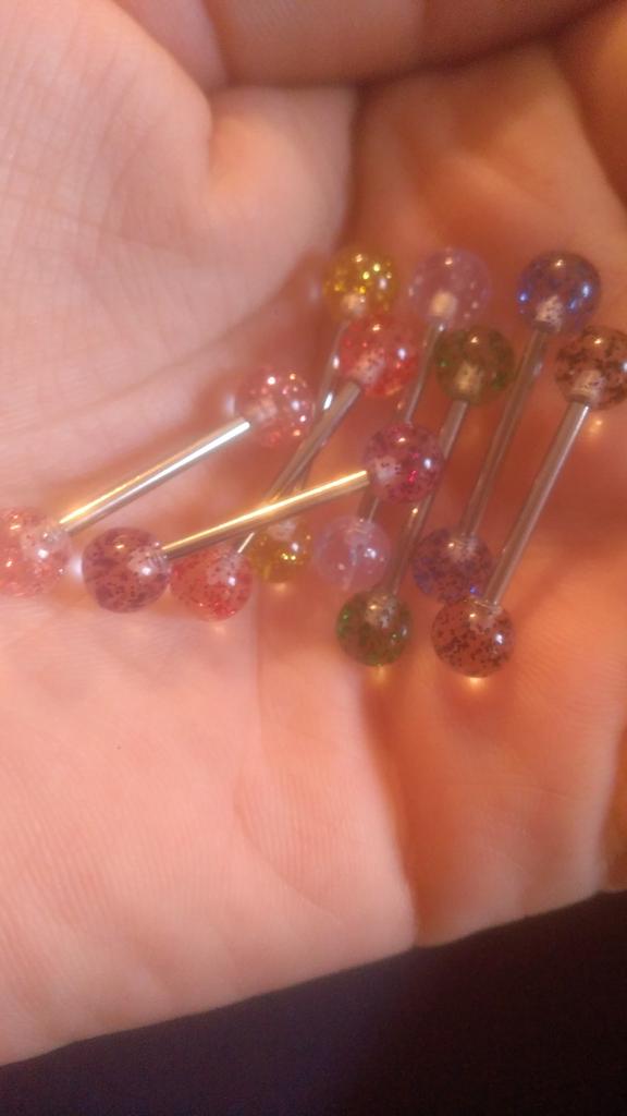 8 STK/sett Fargerike Glitters Tongue Rings Barbell Ball Body Piercing smykker