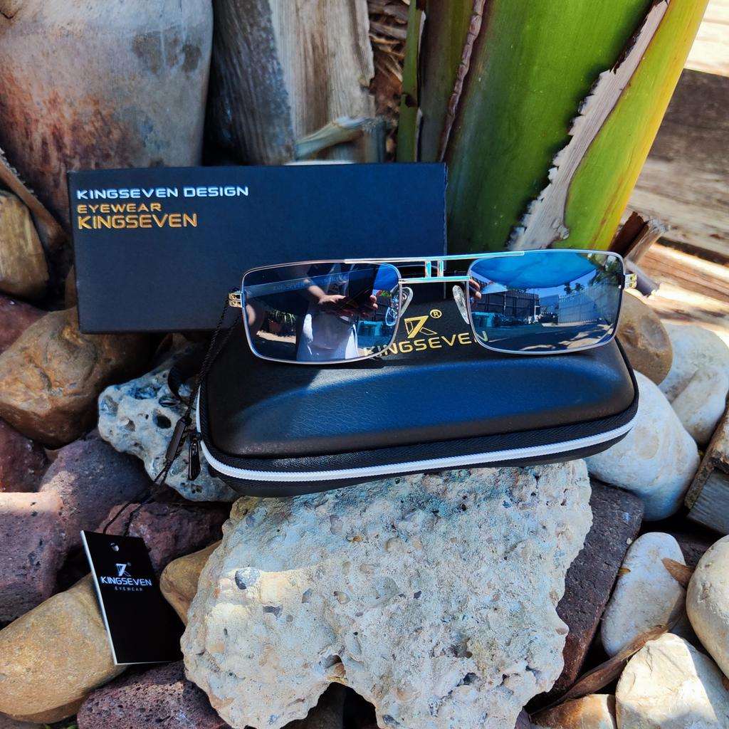 Nye ankomne KINGSEVEN polariserte solbriller i rustfritt stål Vintage innfatning Merke rektangeldesign Kjøring Fiske Solbriller N760
