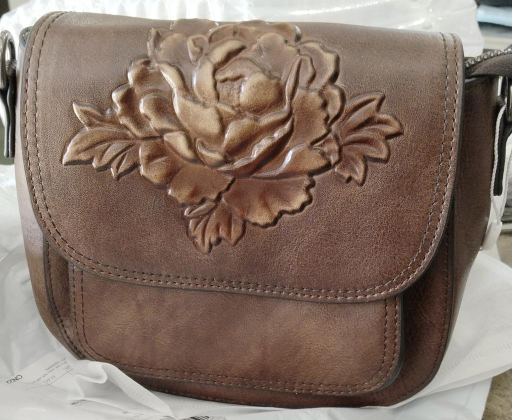 Johnature Håndlaget preging ekte skinn dameveske Vintage naturlig kuskinn liten skulder messenger bag