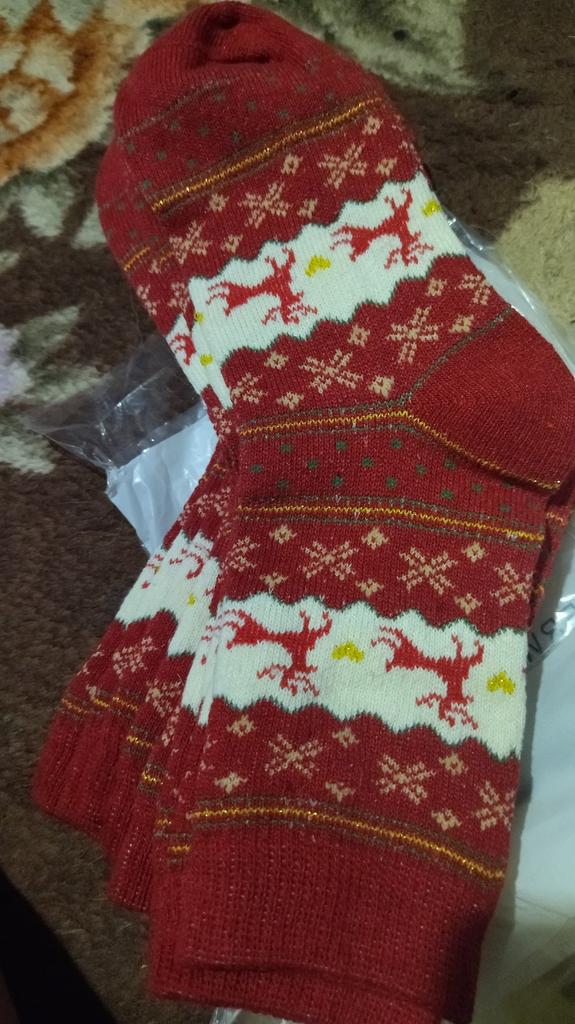 Festlige sokker med reinsdyr, varme, men ikke tykke. Passer til størrelsene 37-38. Gavene vil bli satt pris på.