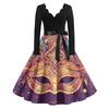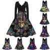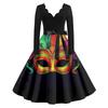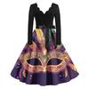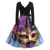 Dame Mote V-hals Casual Slim Mardi Gras Trykte Langermet Kjoler