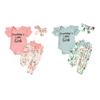 Baby jenter farsdag antrekk 3 6 9 12 18 måneder Brevtrykk Flue Erme Romper med blomstershorts og Heaband 3 stk Sommersett