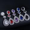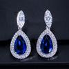 Royal Blue Row Diamond Water Drop Symmetrical S925 Silver Needle Stud High-End Design Celebrity New