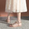 Fashion French Vintage Brown Sandals New 2024 Summer Low Heel Roman Shoes with Open Toe Ladies Simple Stripe Flat Bottom Women Shoes