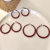 Ankola Red Hoop Earrings: French Autumn/Winter Style with Brushed Silver Needle, Perfect for Round Faces