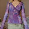 Halvhøy hals undertrøye for kvinner undertøy høst dyreprint mesh tettsittende langermet t-skjorte