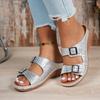 Foreign trade large size women's shoes 2024 summer new European and American fashion wedge heel belt buckle beach cool slippers spot