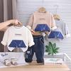 Spring New Korean Version T-shirt Children's Spring And Autumn Sweater Children's Clothing Baby Cartoon Rest Denim Pants Set