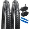 The product includes 2 x 700x38c bicycle tires, 2 x bicycle tubes, 2 x bicycle rim tapes, and 2 x tire levers.