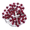 62KD Catholic Crystal Beads Rosary Necklaces Rose Flower Crucifix Pendant Religious Jewelry for Women Meditation Prayer