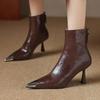 Fashion Winter New Thick Heel Cotton Boots Women's Metal Pointed Head Side Zipper Rivet Anti-slip Wear-resistant Short Boots