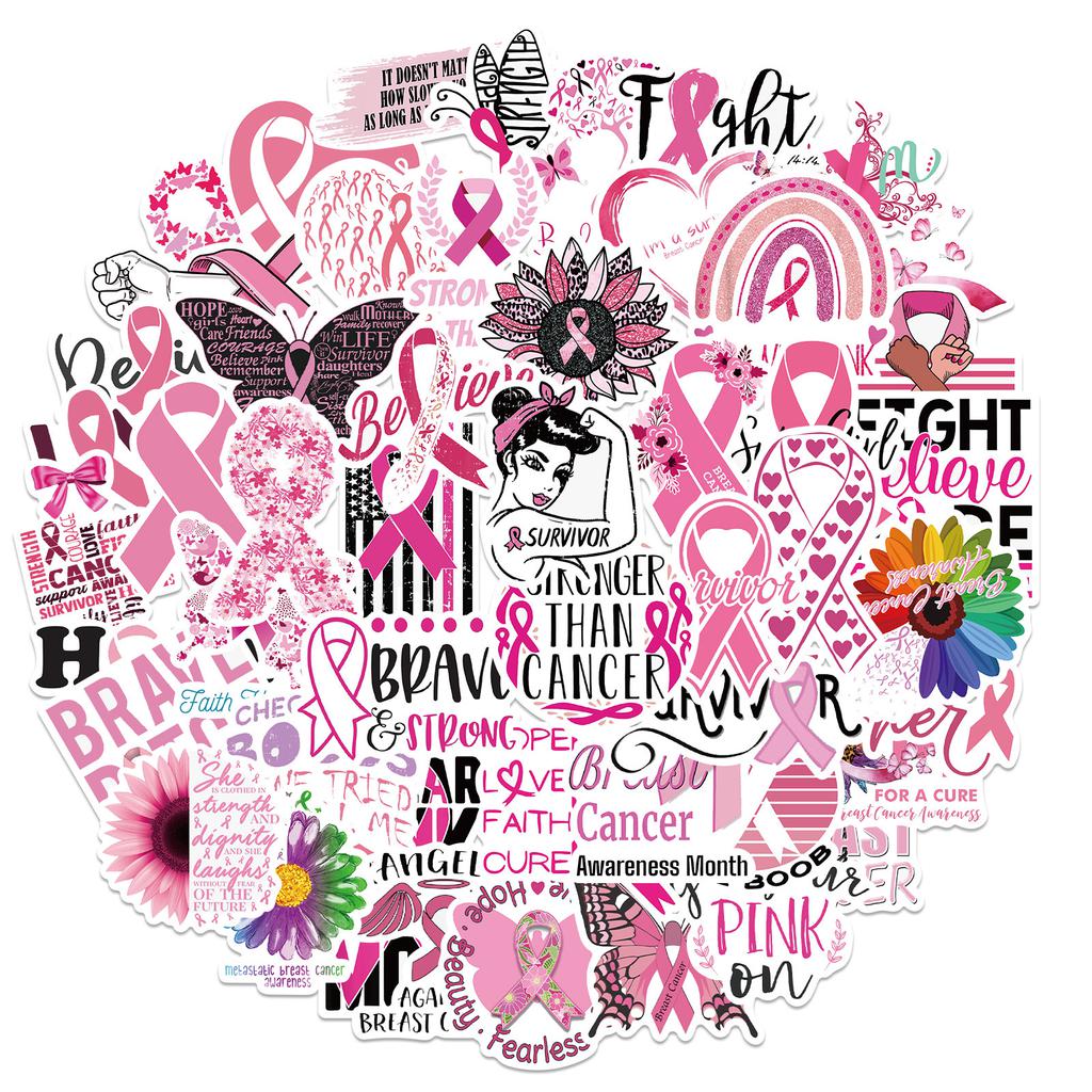 50 Cartoon Pink Ribbon Prevents Lactyl Disease Stickers Decorate Suitcase Notebook Waterproof and Removable Without Repeating