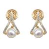 [] 14K Gold Filled Pin Earrings Pearl Moon Women's Daily Simple Cubic Pearl Moon Drop Pin Earrings