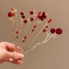 Vintage Red Rose Fringe Hairpin Fashion Chinese Hairpin Headwear Retro Red Hair Stick Disk Hair