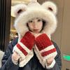 Cute Scarf Hat Glove for Women Embroidery Bow Furry Scarf Cap Set Bear Ears Plush Hat Outdoor