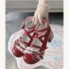 Fashion Lolita Red High Heels Cute pumps Shoes spring Autumn Lace Thick high heels Single Shoes Patent Leather Mary Jane Women's Shoes