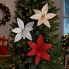 Realistic Glitter Christmas Poinsettia Velvet Christmas Tree Ornaments Home Decor