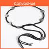 This woven waist belt features a sturdy metal buckle with a circular or square design, supporting a relaxed cotton-linen textile pattern. it resists wear and maintains shape over time. Crafted for pairing with vintage-style dresses, it enhances waistlines during daily wear or special occasions. Wipe clean with a damp cloth for maintenance.