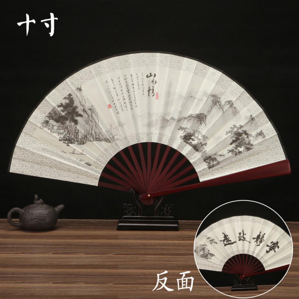 Elegant Design: The fan surface showcases a refined and sophisticated design, employing traditional Chinese ink wash painting techniques.are exquisitely rendered.