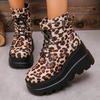 Fashion Women's Shoes 2025 Plus Size Ankle Women's Boots Platform Modern Boots Women Leopard Side Zip Front Lace-up Wedges Shoes Women