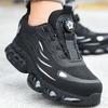 Fashion Rotating Button Safety Shoes Steel Toe Sneakers Indestructible Black Work Shoes for Men Lightweight Non-slip Protective Sneakers