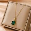 925 Sterling Silver Emerald Square Diamond Clavicle Chain Necklace - Handmade Beaded Jewelry